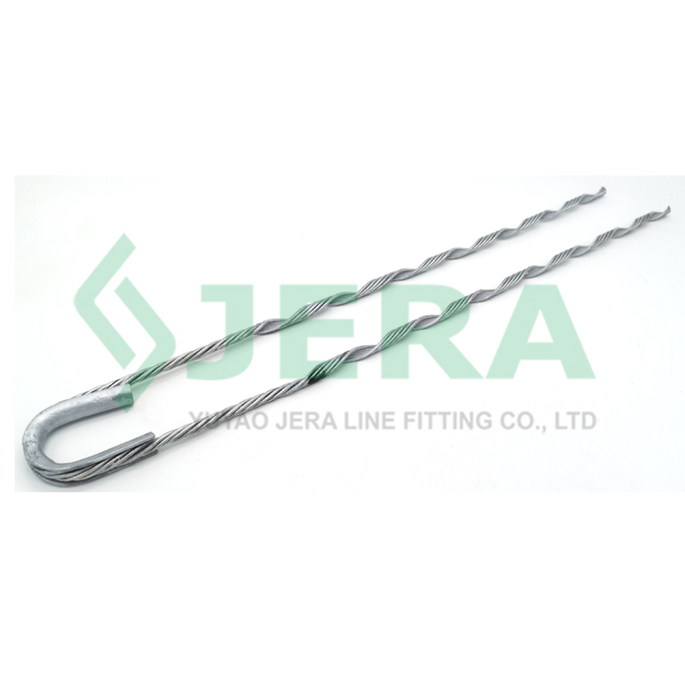 Jera JS ADSS cable guy grips were made of hot dip galvanized steel and covered by special sand and glue to improve the friction between ADSS cable. ADSS cable guy grips do not require any tools for installation and can be mounted on fiber optic cable directly.