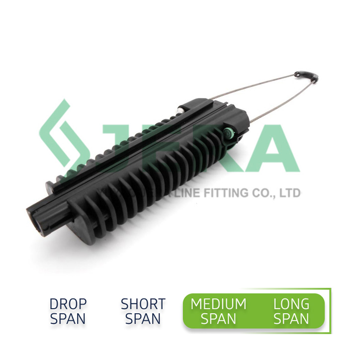 Anchor clamp PA-3003 either called aerial tension clamp, used to tension and secure ADSS cable during outdoor FTTx line construction, for medium and long span line deployment.