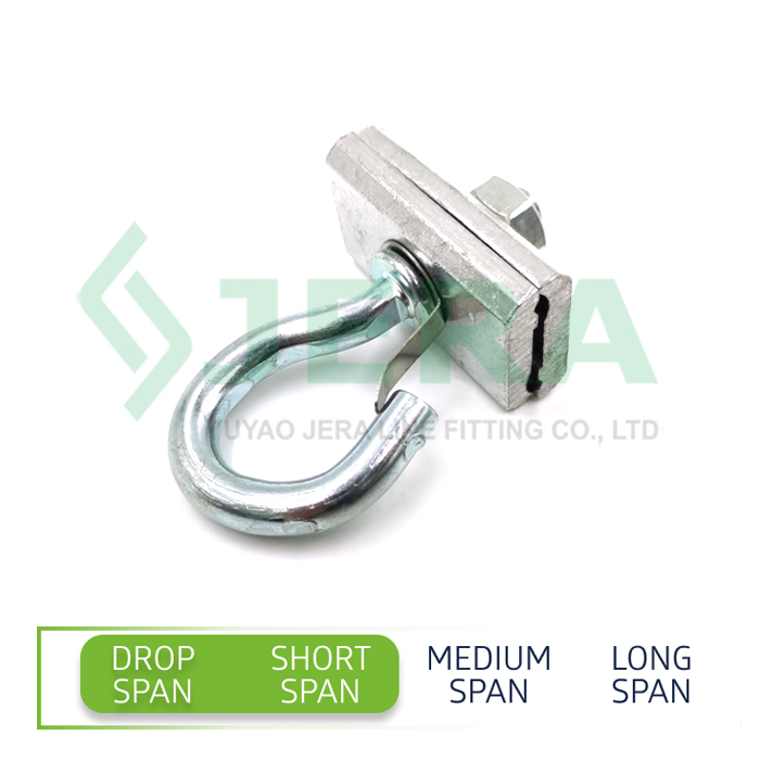 Drop cable span clamp DH-01 other called ftth cable draw hook or Q span clamp is designed to suspend ftth cable or hook drop cable clamp during outdoor overhead FTTH network construction.