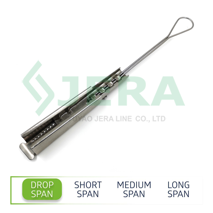 Fiber optic cable Clamp ODWAC-26, other called ftth drop wire clamp is designed to tension and support fiber optical cable or telephone drop cable on dead-end or intermediate routes during FTTH, FTTX network constructions.