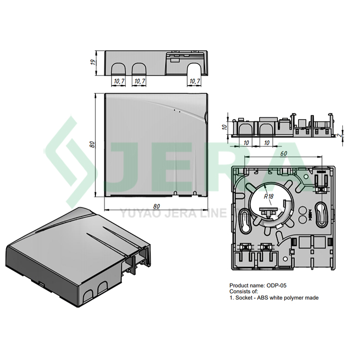 Fiber socket faceplate ODP-05 either called fiber optic outlet, is a device used for connecting passive optical network units. FTTR optical socket provides mechanical or fusion splicing, termination, and wiring in FTTH (Fiber to the Home), FTTO (Fiber to the Office), and FTTD (Fiber to the Desk) applications. It is primarily deployed in users’ homes, typically installed on walls or in standard electrical wiring cabinets. Fiber optics socket is available with additional splice tray.