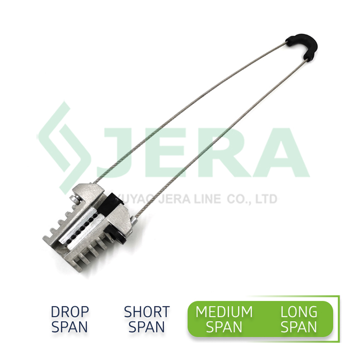 Tensioning clamp PA-07-320 other called aluminum anchoring clamp is developed to tension and anchor fiber optic cable with steel messenger during outdoor FTTX network constructions.