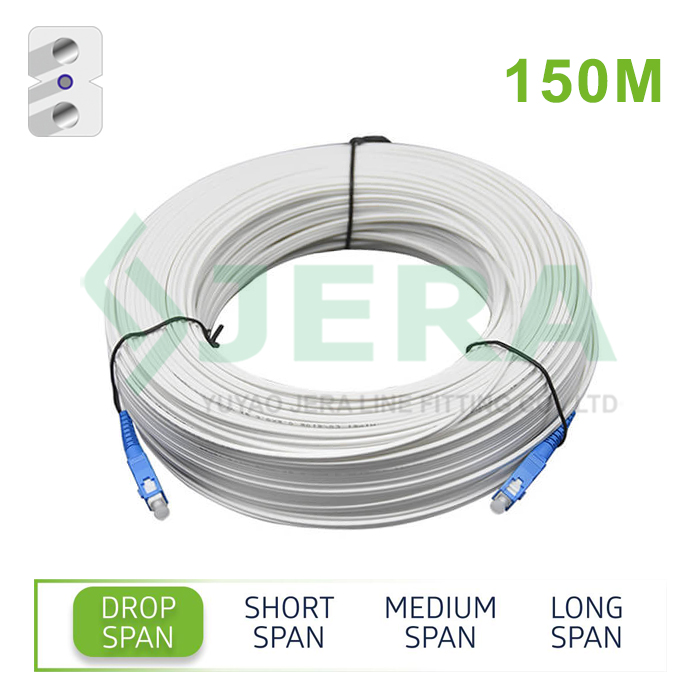 FTTH Drop cable patchcordS 150m also called simplex indoor drop cable patch cord is an indoor fiber optical drop cable each end pre-terminated with SC/UPC connector which help to save time and costs during FTTH line deployment for lline-man or end users.