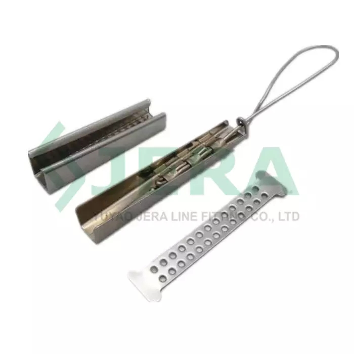 Ftth fiber optic cable clamp ODWAC-22s, other called ftth clamp is designed to tension and support fiber optical cable or telephone drop cable on dead-end or intermediate routes during FTTH, FTTX network constructions.