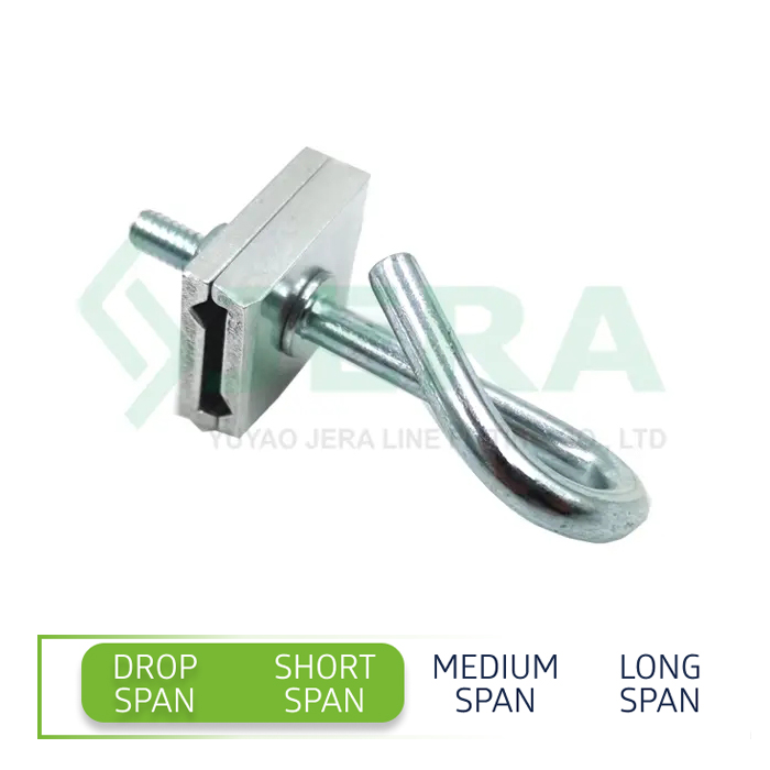 The operation of this span clamp is very easy, just need to insert appropriate diameter cable in the groove of two plate and tightening the nut, at last attach the assemblies on pole bracket or hook. The fiber drop cable does not slips from when mechanical strength was reached and metal hook part of draw hook allows easily handily installation.