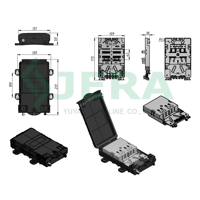 Ftth fiber optics application, outdoor pole or wall. Used to connect the drop cables with the terminated ADSS fiber optic cable, in optical distribution networks.