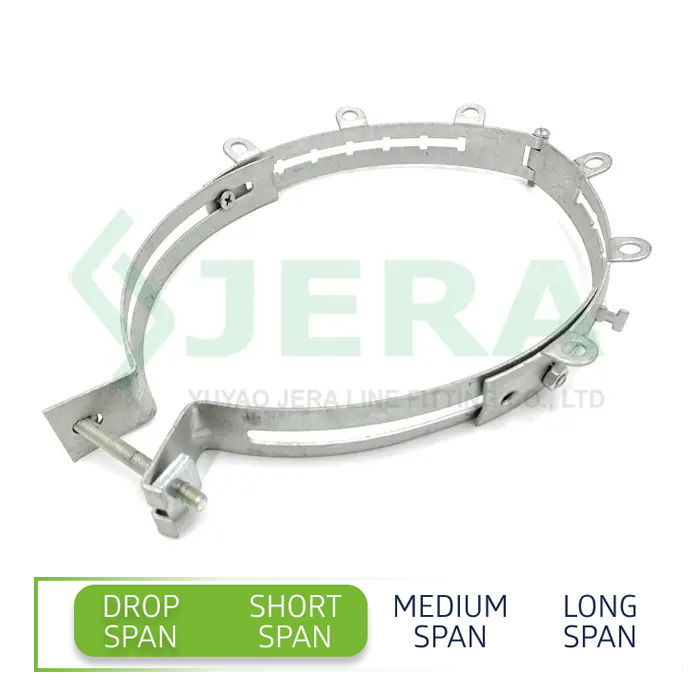 Multi point pole bracket YK-11 other called Fiber fiber optic cable hoop was designed to applied with wooden, concrete or metal poles, its provide 6 points for drop wire clamp, usually used in aerial fiber to home(FTTH) line constructions.