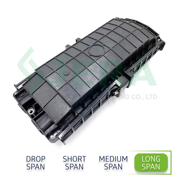 Fiber optic joint box is like a flat case. This type of fiber splice closure is the most commonly used one in mounted aerials or buried underground. Horizontal fiber cable splice closure usually contains one or more fiber splice trays to provide space and protection for fiber optic splices. Fiber splice trays used in different fiber optic splice closures may have different designs and fiber counts.