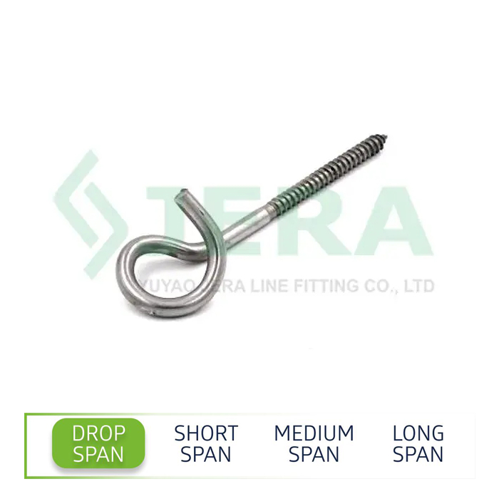 Pigtail screw hook PS-5 other called ftth pigtail hook designed to tension ftth drop cable with suitable ftth drop cable clamp in outdoor FTTx deployments.