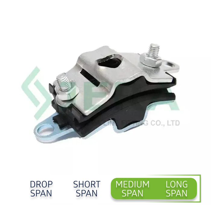 Suspension clamp CS other called figure 8 cable suspension clamp is developed to suspend or support figure-8 fiber optic cable on short spans during outdoor FTTX transmission line constructions.
